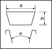 | Top width ( a mm ) | 25 | 31 | 41 | 52 | 66 |